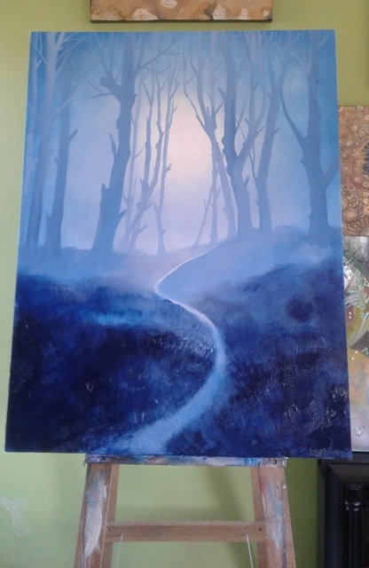 This painting is from the perspective of the person coming out of the woods onto the path. It’s a pause for observation or perhaps even hesitation.