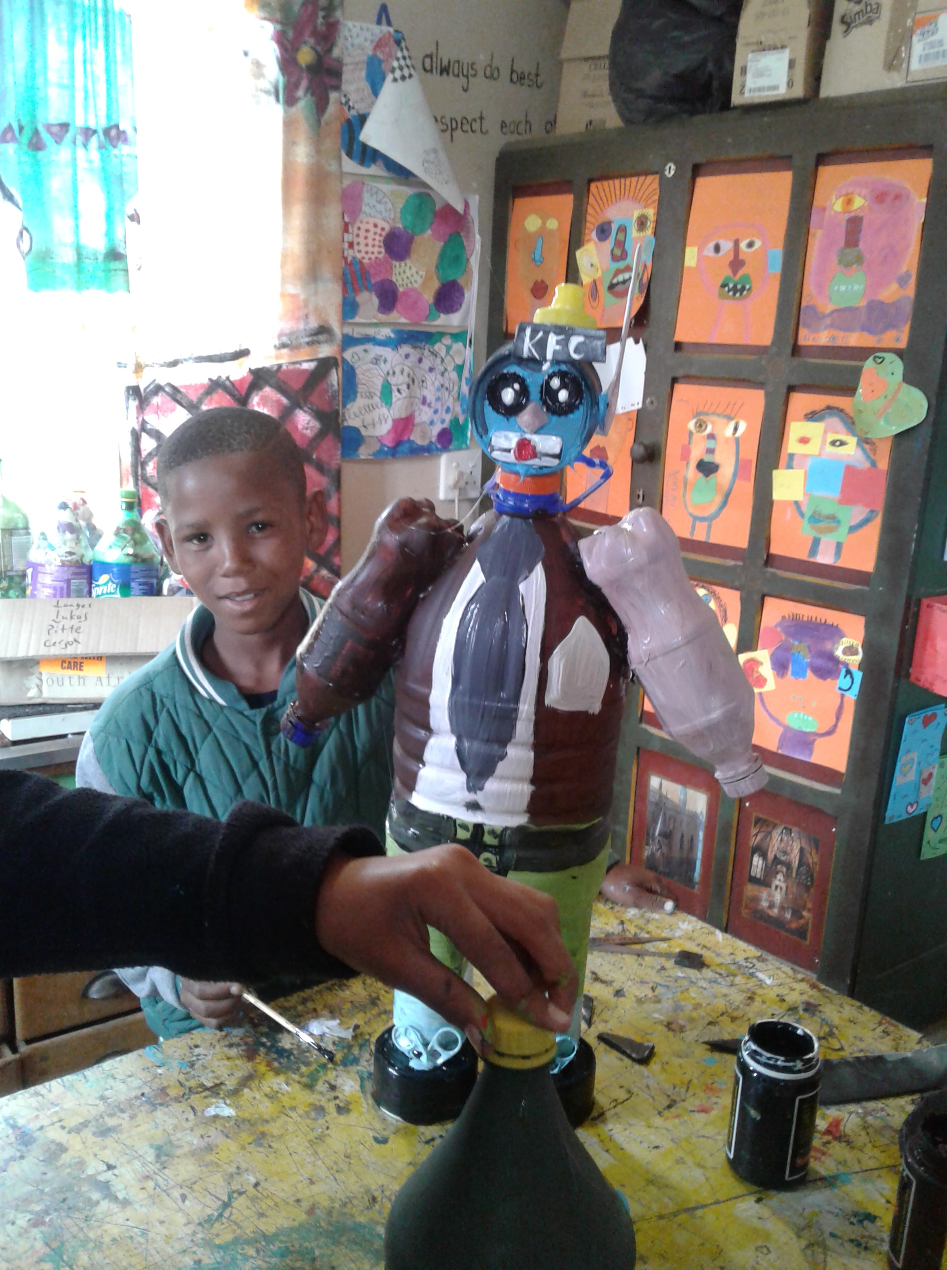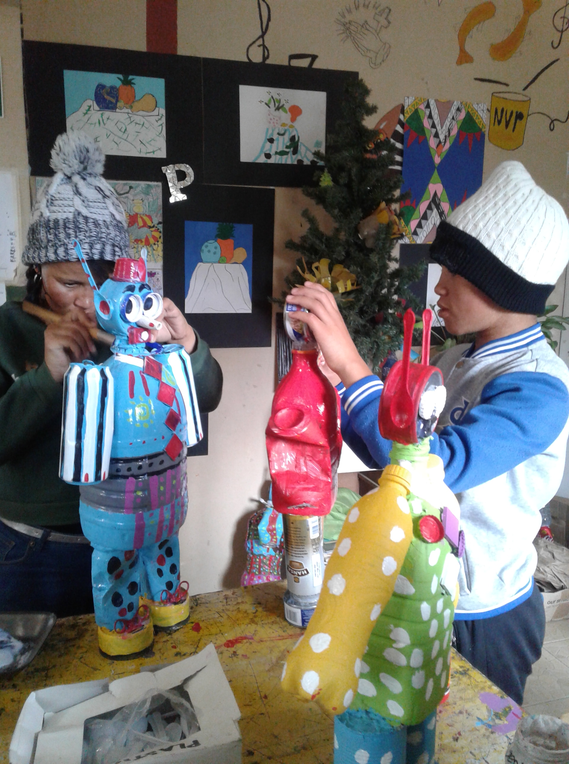 Below are my craft students (check out the Net Vir Pret Organisation I work with — they are doing some wonderful things) with their ECO BRICK pig creations — aren’t they fabulous?