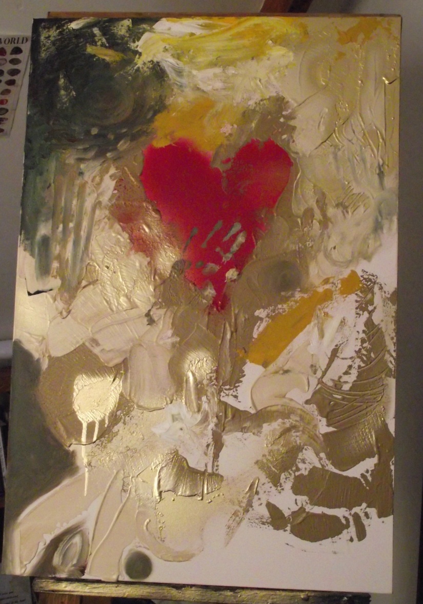 I couldn’t quite think of where and what to add that was green but the Universe knew. I ended up painting vines and leaves growing up out of the chaos. A symbol of hope and growth from bad experience.