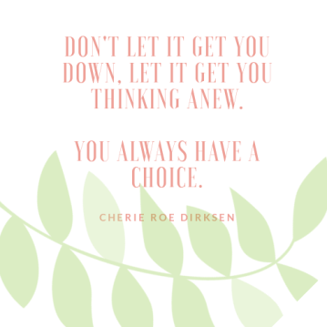 So, my lesson in all this is don’t let it (insert your problem here 😉) get you down, let it get you thinking ANEW. You always have a choice.