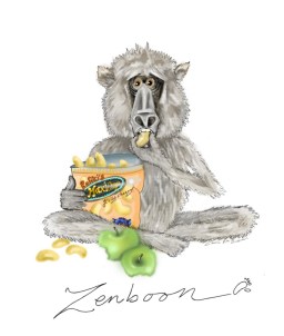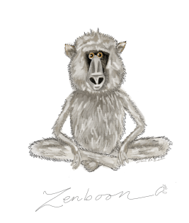 I’ve decided to put pen to paper, brush to canvas, digipen to screen and I’m drawing my cheeky little friends in an attempt to shed a more humorous light on the whole ordeal. The idea of a Zen baboon is ludicrous and certainly dichotomous (A word that irrelevantly rhymes with hipopotamous). However, these monkeys have gained mastery over mischief. Aka ZenBoon is born, my way of alchemizing my low-lying mood.
