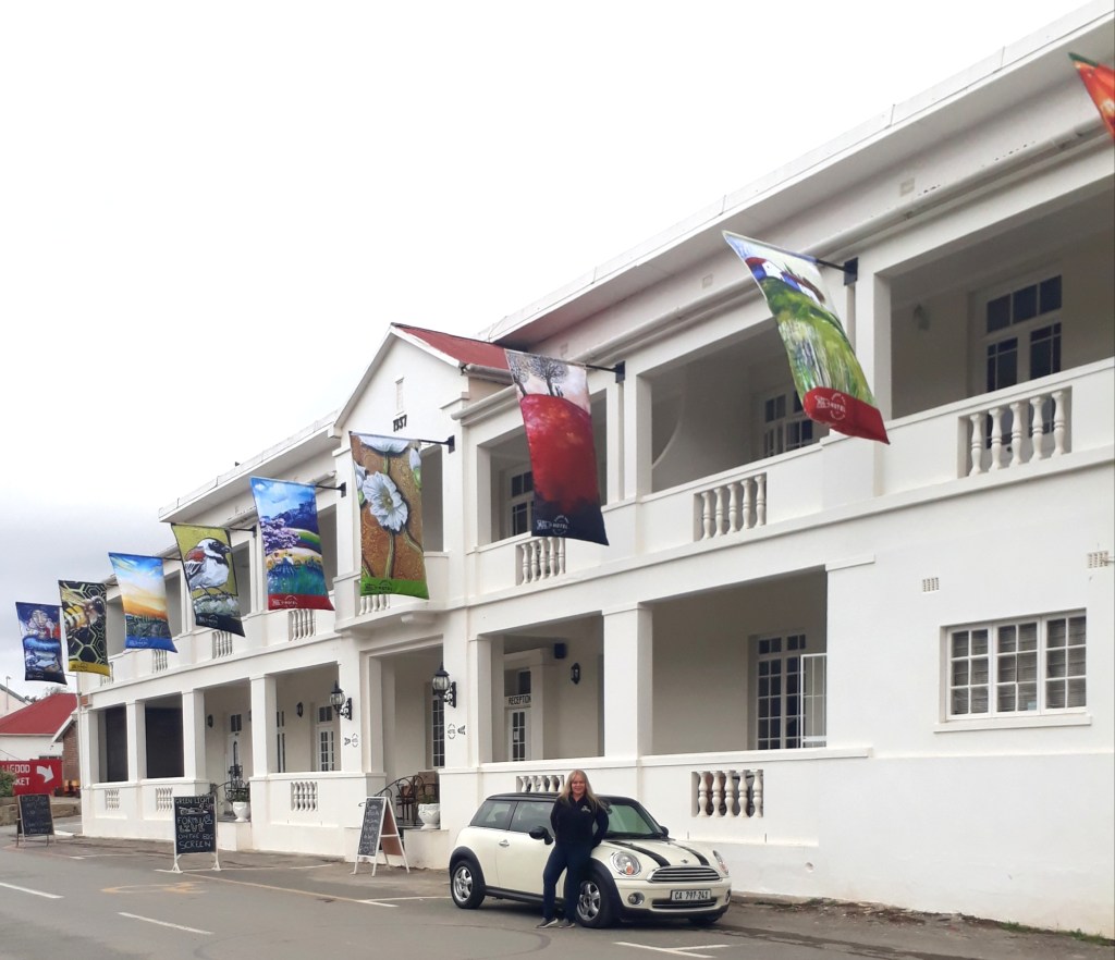 I got a call from Rick Melvill (of Melvill and Moon), co-owner with Sue Melvill (of Unplugged) of the Karoo Art Hotel in Barrydale, to ask if I would like to be the next artist to showcase their art on flags that will be flanking the hotel. Well, I was absolutely thrilled by the idea and obviously answered with a resounding, “Yes!”