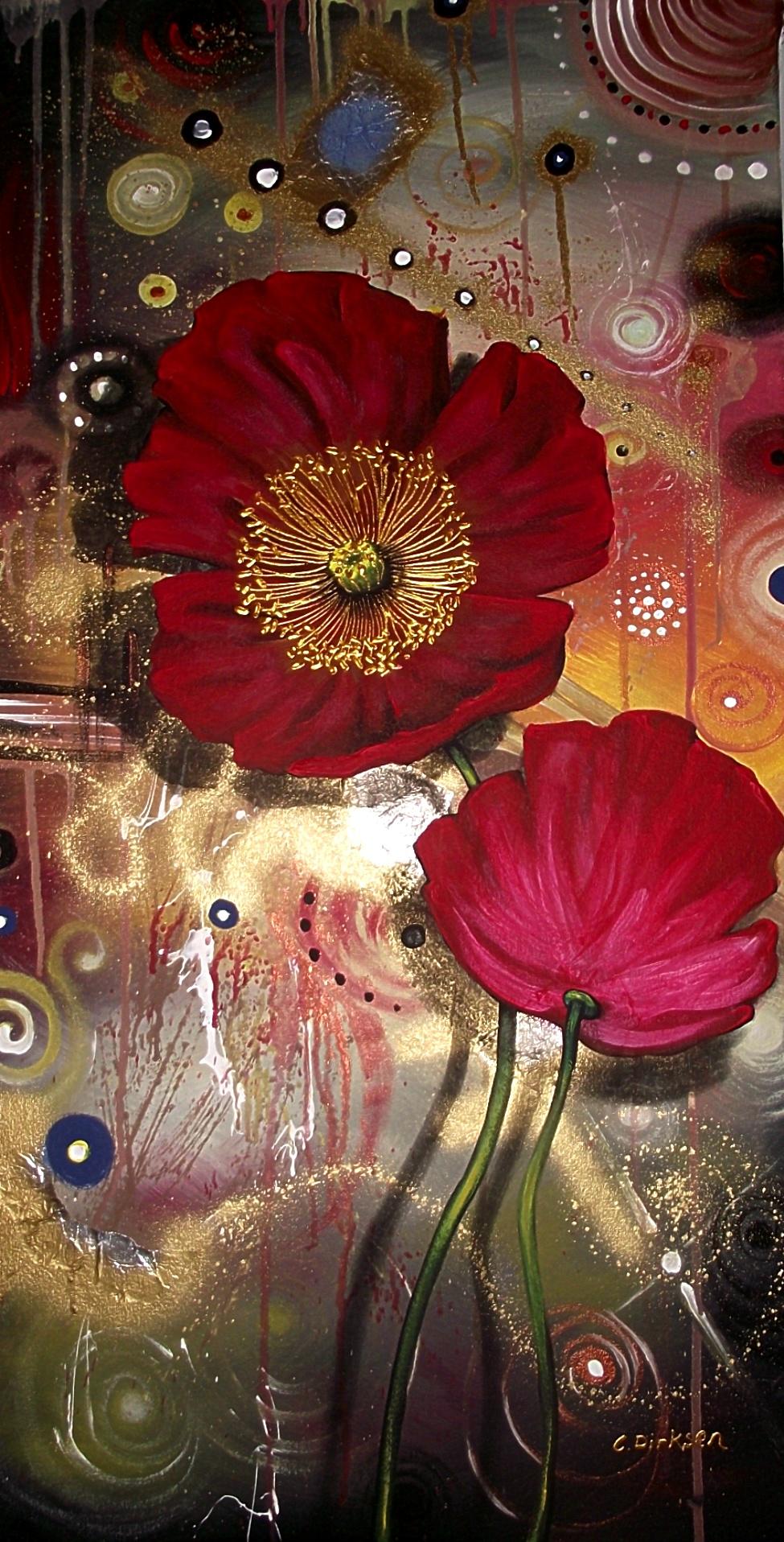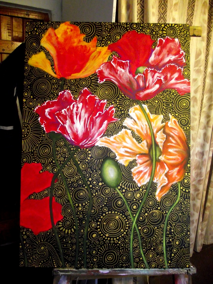 Stage 5 – the first layers of colour are added to the poppies