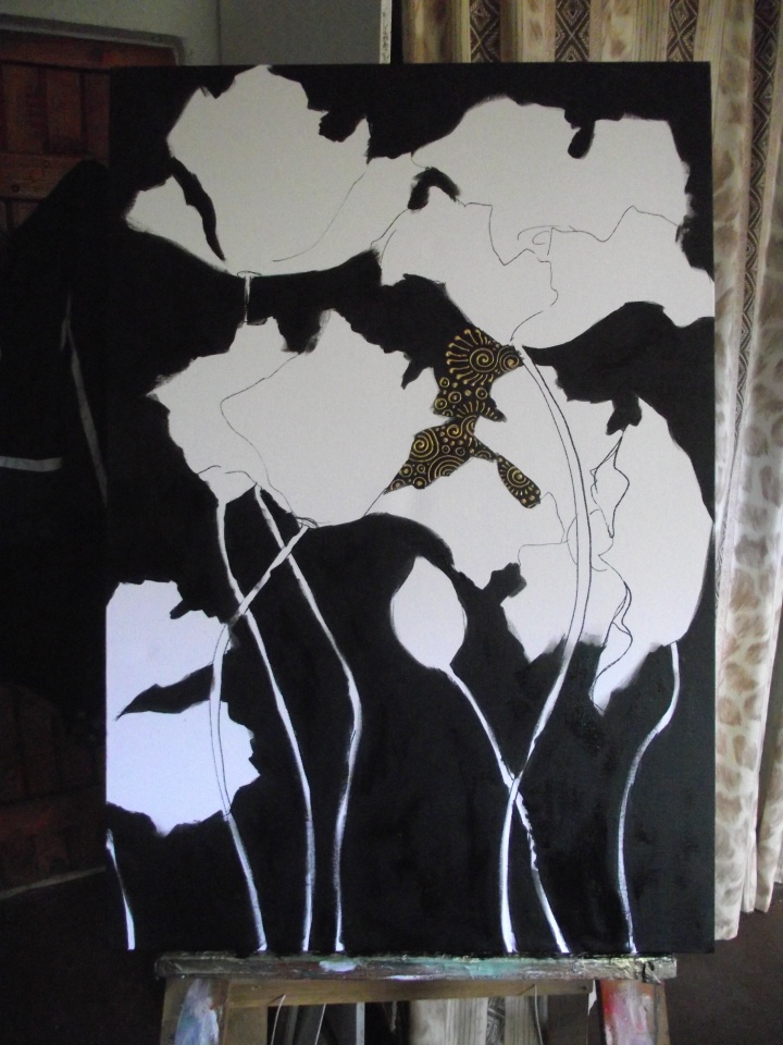 Stage 1 – outlining the poppies
