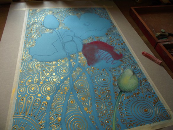 I’ve been itching to get to work on a BIG scale. So, I bought this really large canvas and got painting! It’s a concept that has been brewing in the recesses of my mind for quite some time.