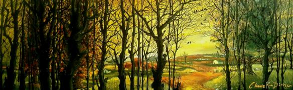 I eventually settled on a combination of 2 suggested titles — one was about ‘fall’ (being a very autumnal landscape) and one was about ‘the return’ (as in the prodigal son), which I liked very much. So, the title has an ambiguous meaning which I thought was fitting.