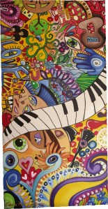 It is what I like to call subliminal painting (or intuitive painting) — a process where I listen to the music whilst painting what comes through. So, I’m virtually tapping into the message behind the sound — then I blog about what emerges via words and photo’s of the painting process.